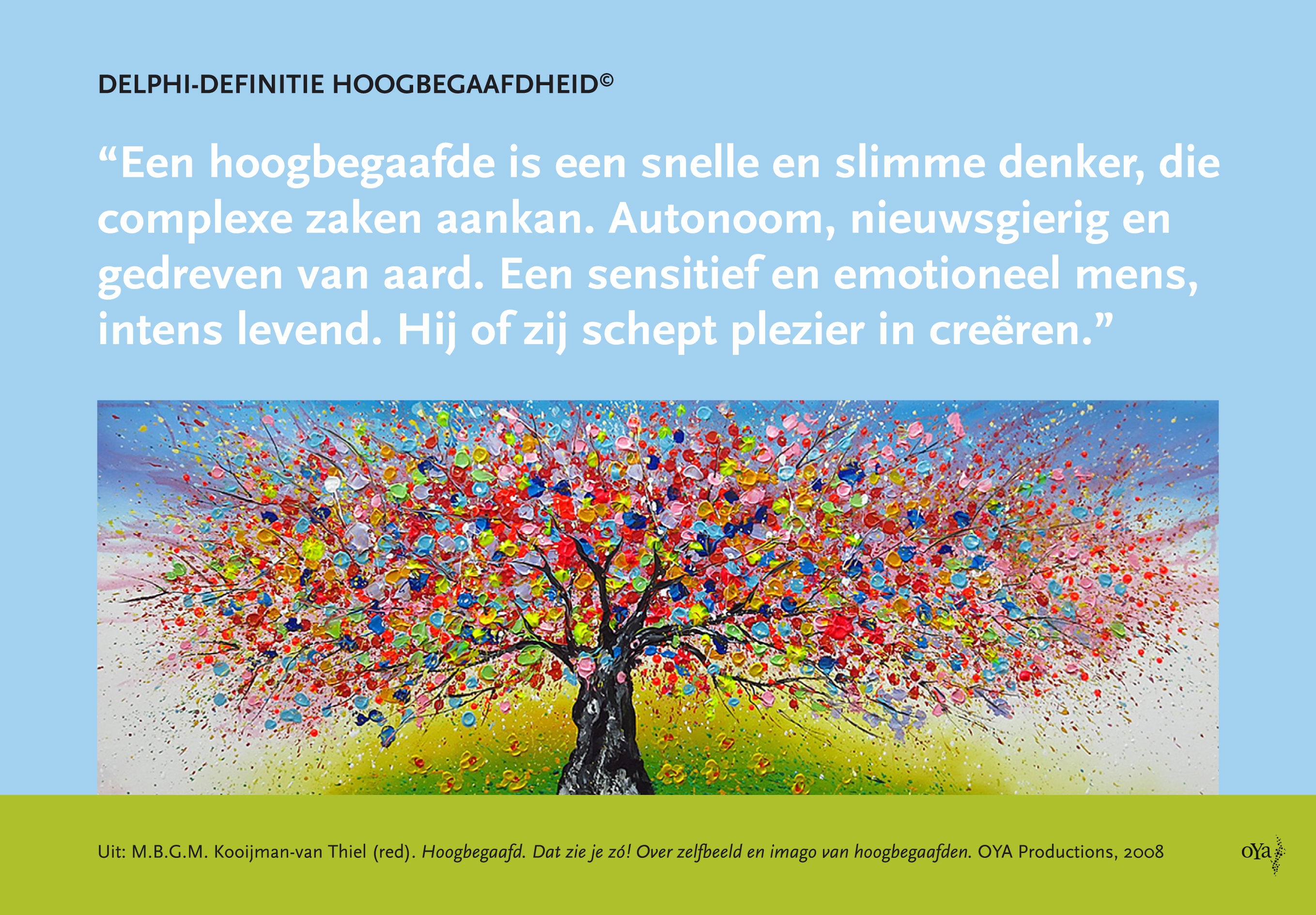 Eine Deutsche Version des ‘Delphi Modells Hochbegabtheit©‘ ist lieferbar. Das Modell ist gedrückt auf einer 16×23 Karte (full color). Sie können eine Bestellung machen via maudvanthiel at oya punt nl. Für Lieferungen außerhalb der Niederlande wird eine zusätzliche Überweisungsgebühr von 2,50 € erhoben, für Lieferungen außerhalb Europas eine zusätzliche Überweisungsgebühr von 5,00 € (abhängig vom Gewicht des Pakets).